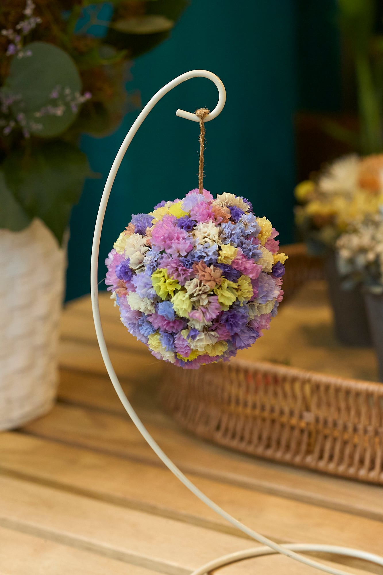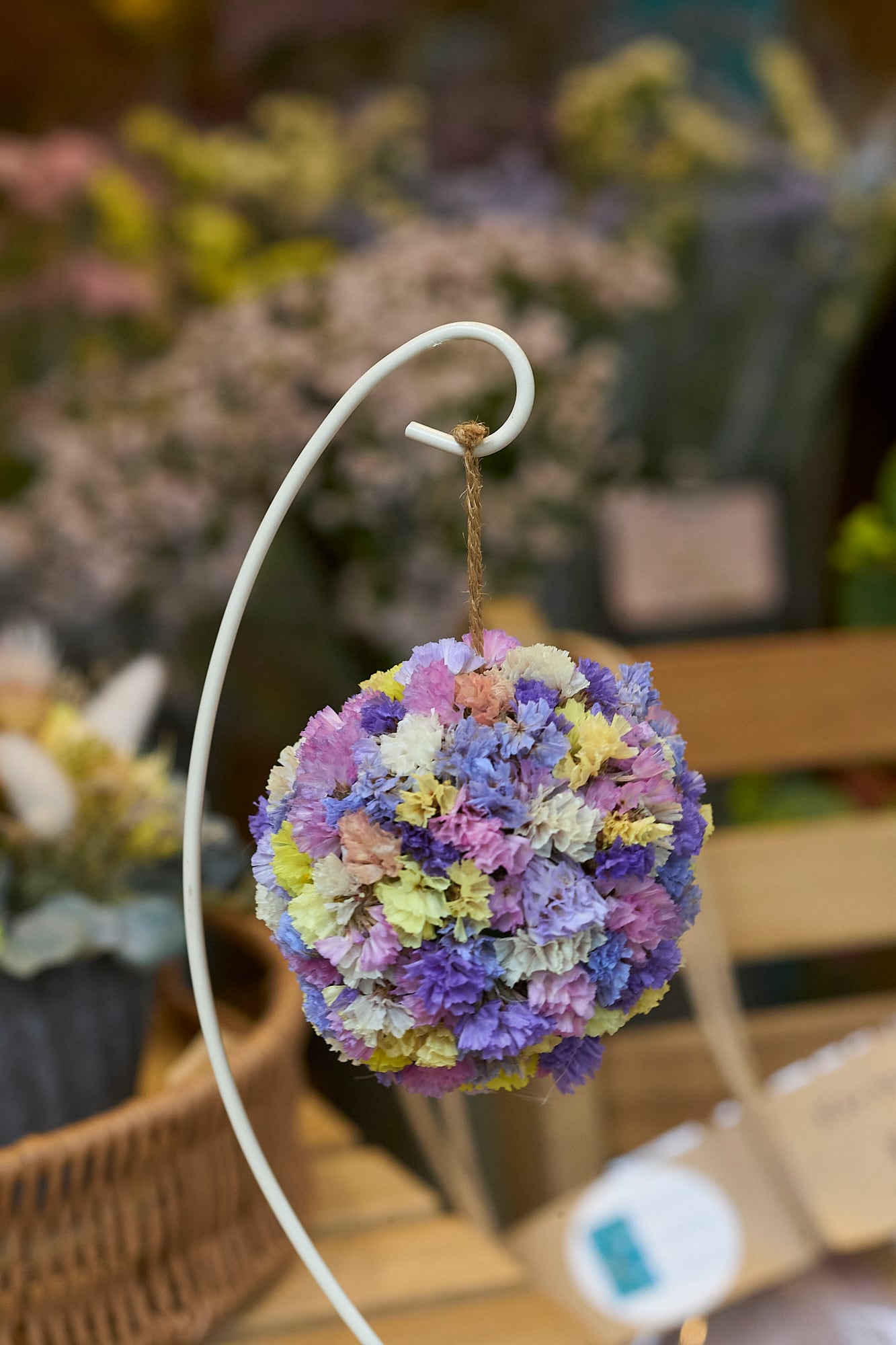 スターチスのフラワーボールは美しい色合いと優雅なフォルムが特徴のアイテムです。