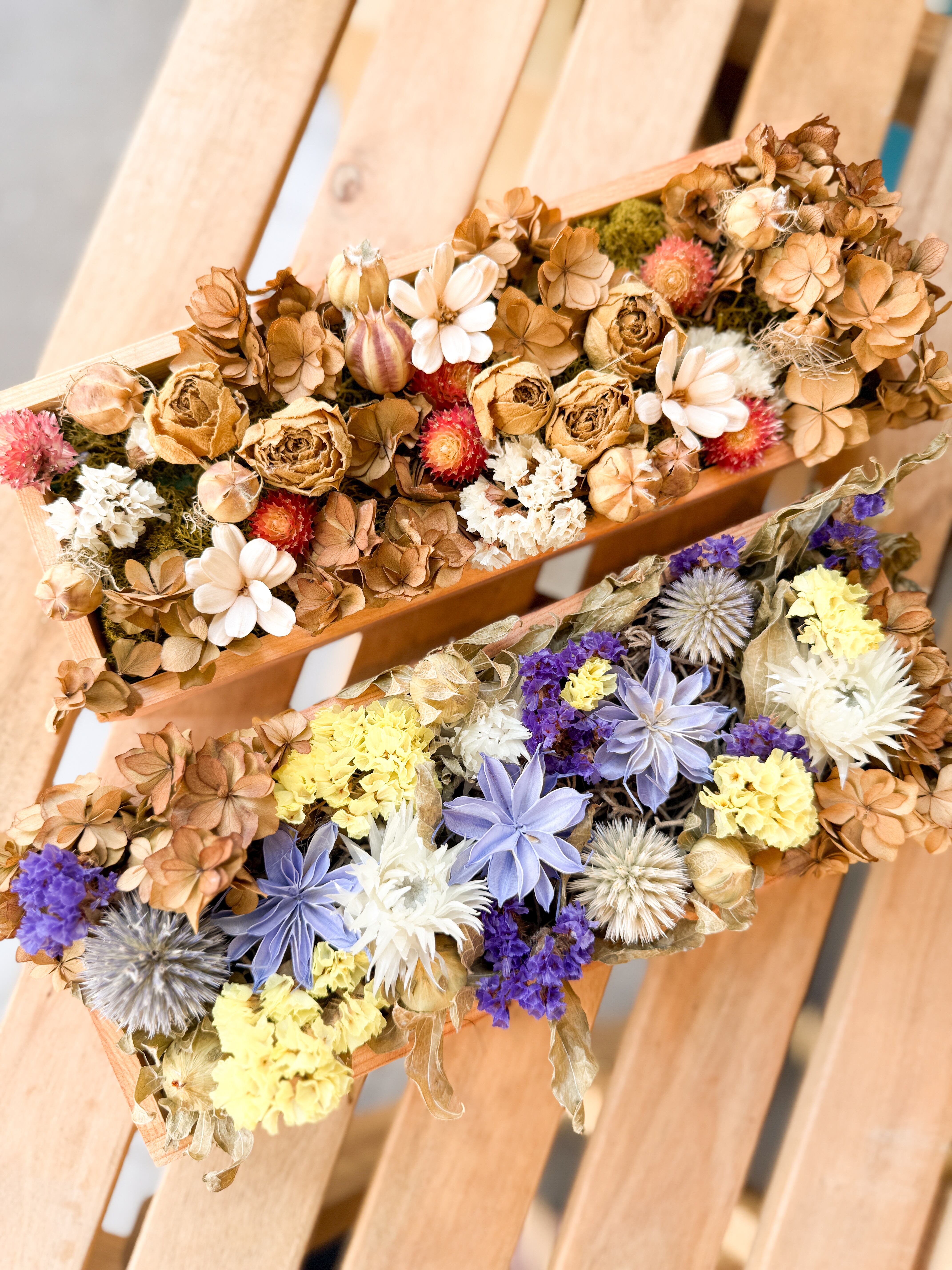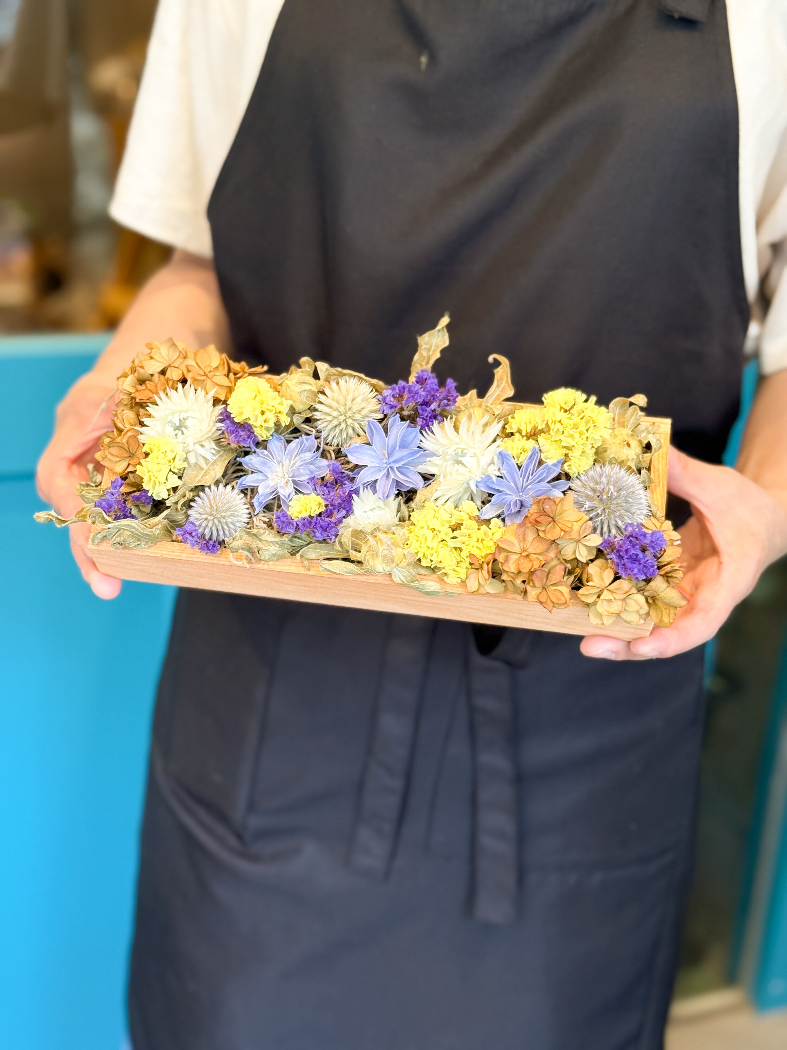 美しいスターチスを使用したこのドライフラワーボックスは、優雅で上品なパープルの色合いが魅力です。どんな空間にも馴染みやすく、心を和ませるインテリアとしてお楽しみいただけます。